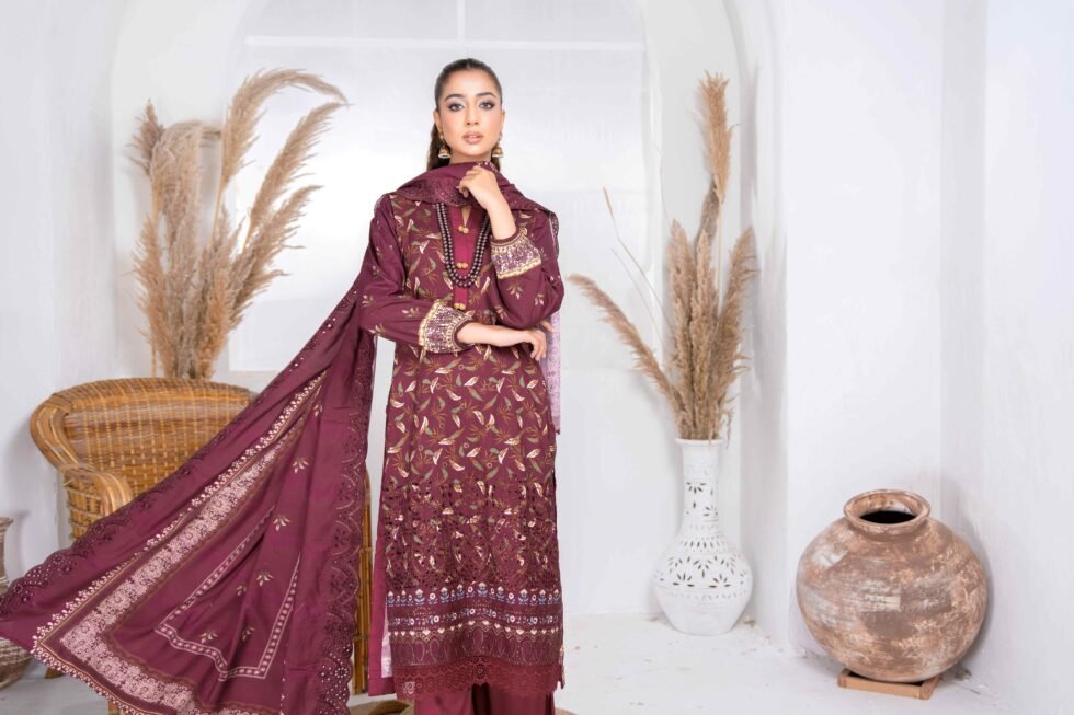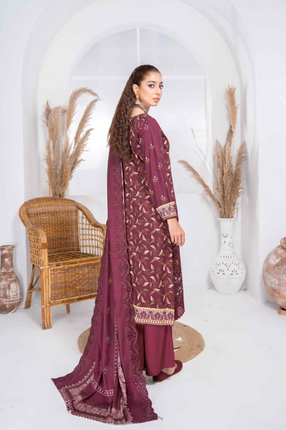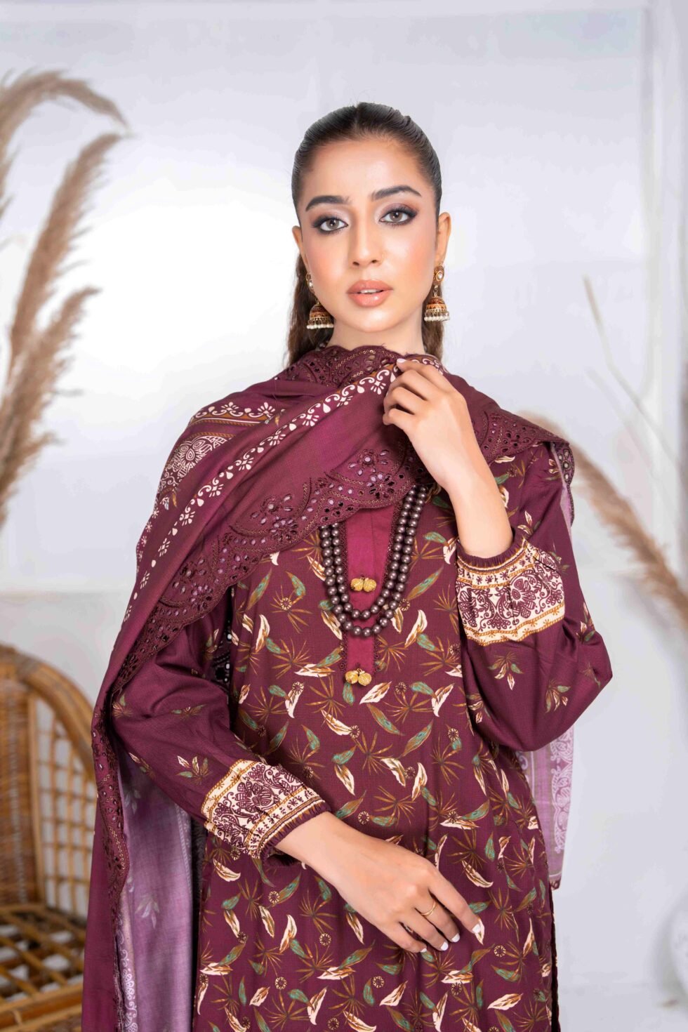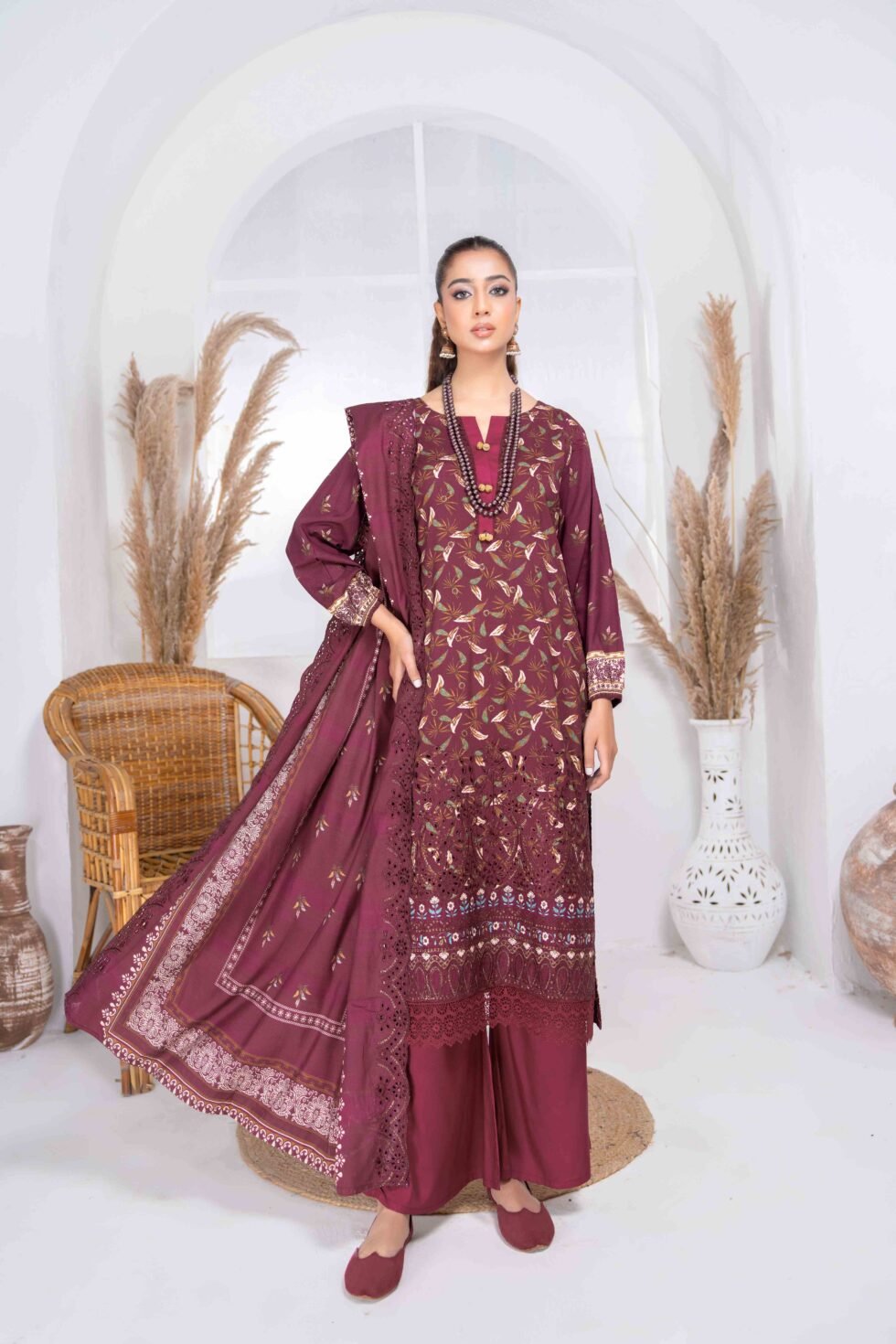 Printed linen Embroidered cut work Dupatta