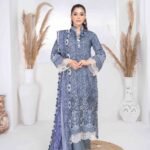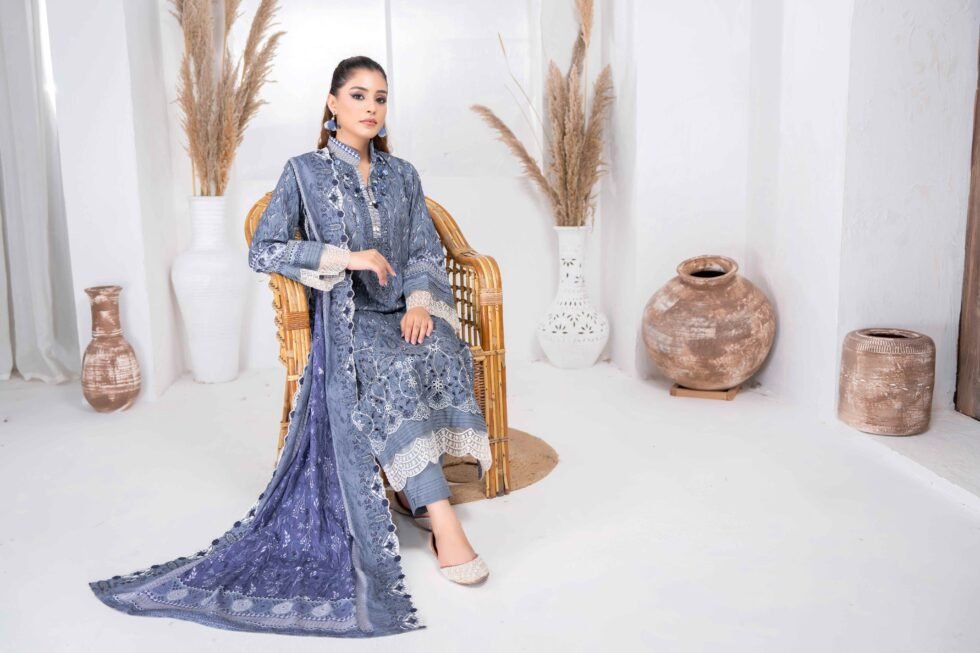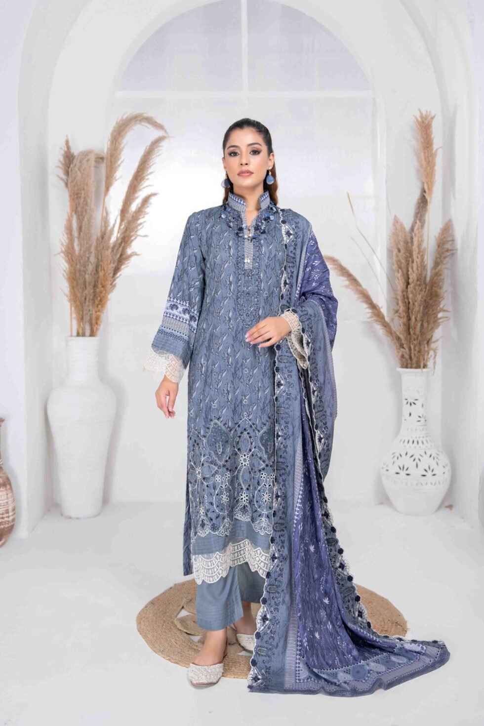 Printed linen Embroidered cut work Dupatta