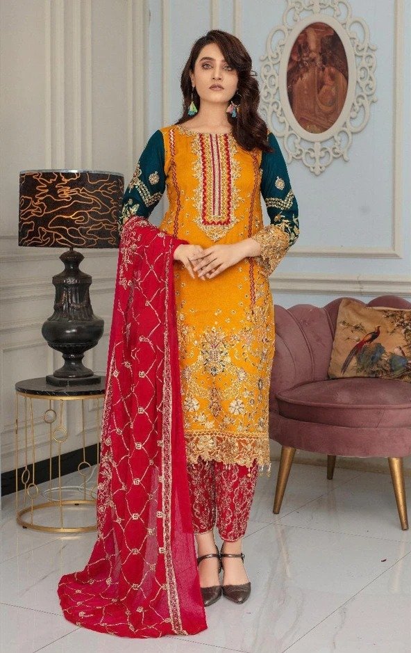 Luxury Embroidered Pure Bamber Chiffon Dupatta
